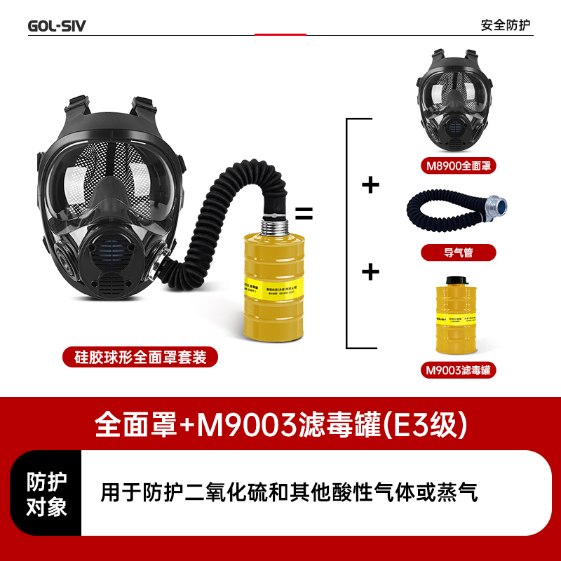 胜丽 3级滤毒罐防毒面具全面罩搭配E类套装防酸性气体 M8900+M9003 1套装