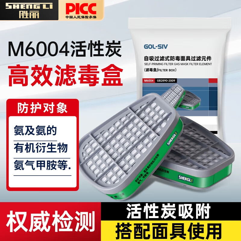 胜丽 M6004 防毒面具配件滤毒盒防氨及氨的有机衍生物化学加工 2只/包 搭配胜丽M6800面罩使用