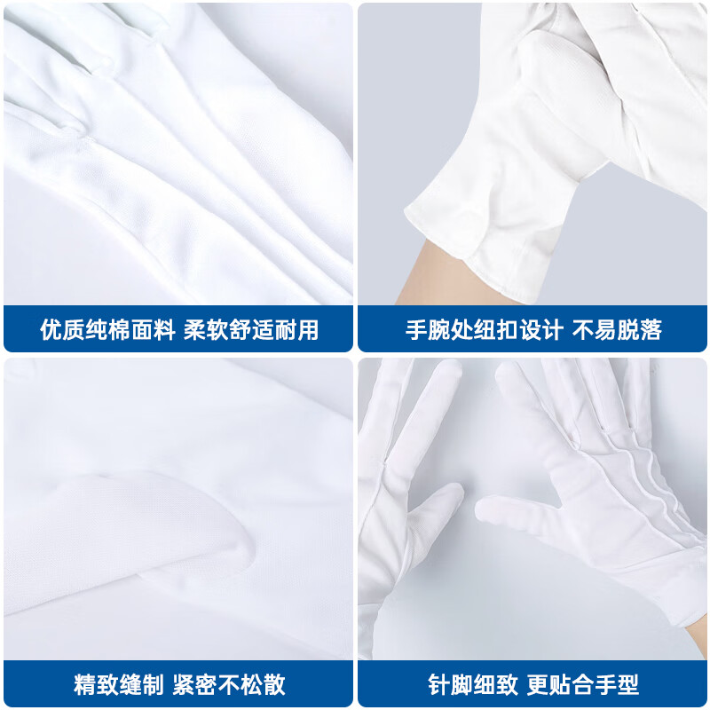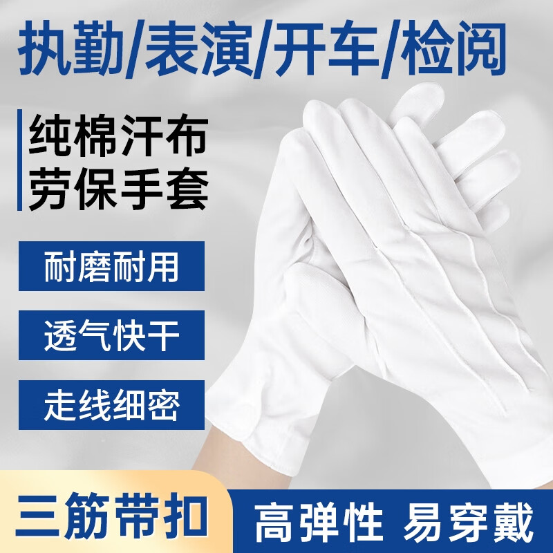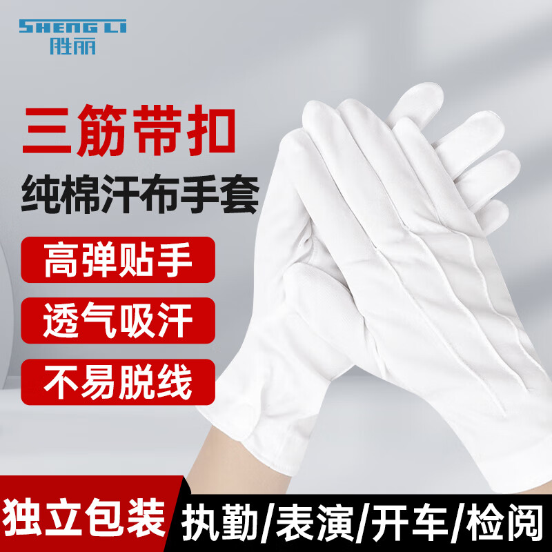 胜丽 GHA101 白手套礼仪手套劳保开车检阅表演手套 纯棉 三筋带扣款 10副装