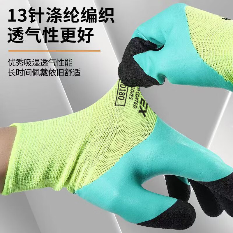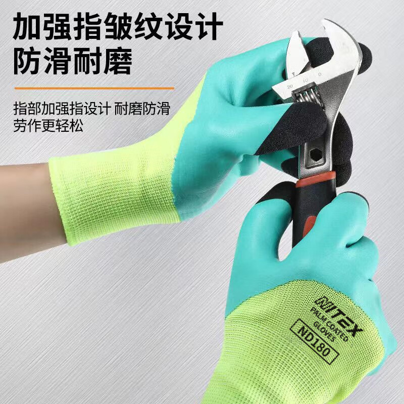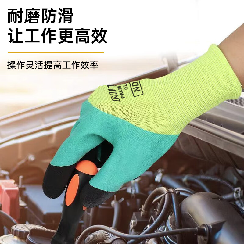胜丽 ND180 劳保手套园艺手套耐磨双层浸胶 绿色 12副装