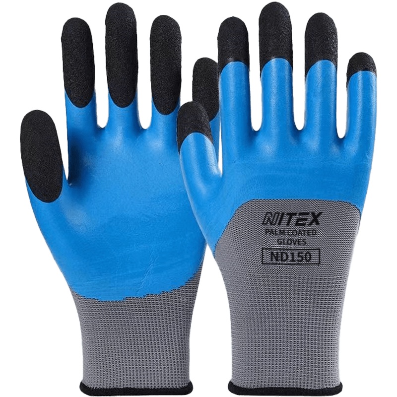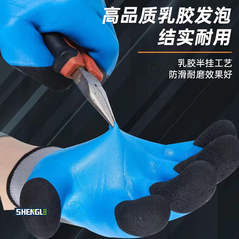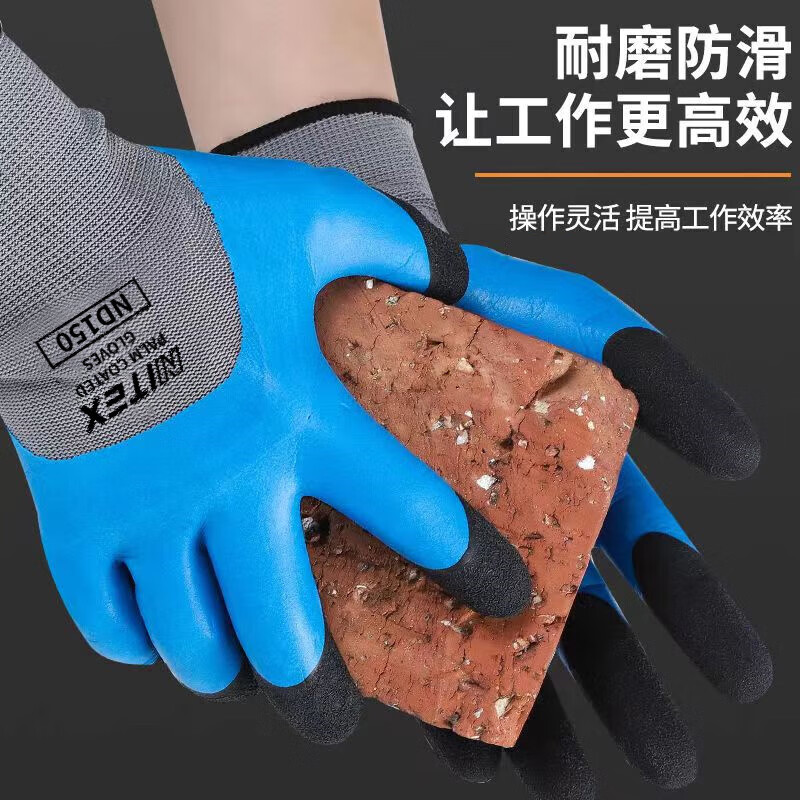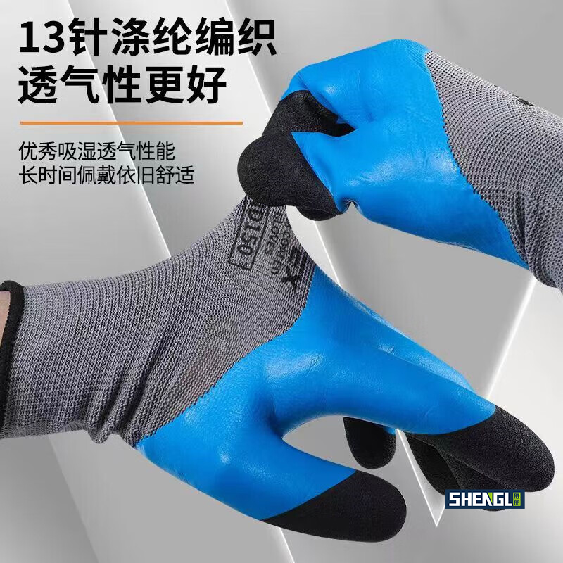 胜丽 ND150 劳保手套园艺手套橡胶耐磨浸胶薄款透气加强指 蓝色 12副装