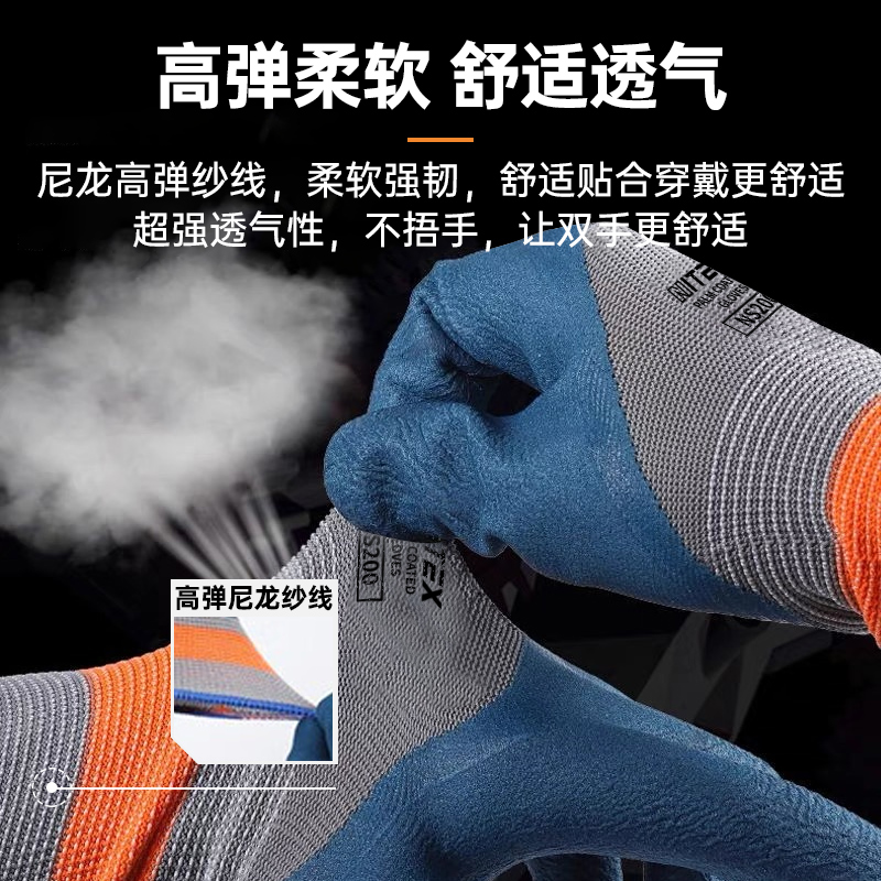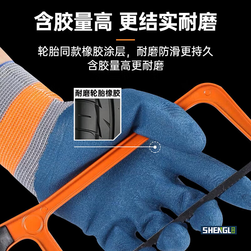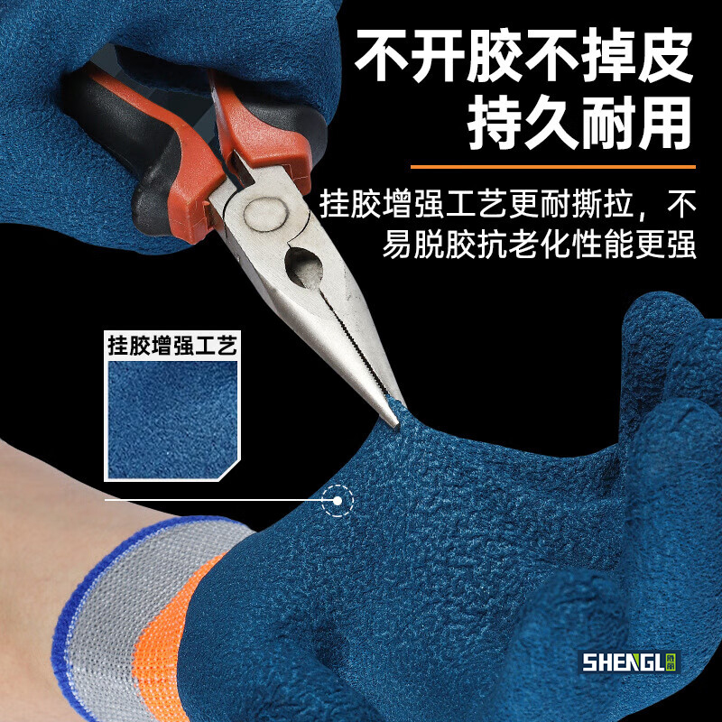 胜丽 NS200 劳保手套园艺手套 防油防滑耐磨王 蓝色12副装