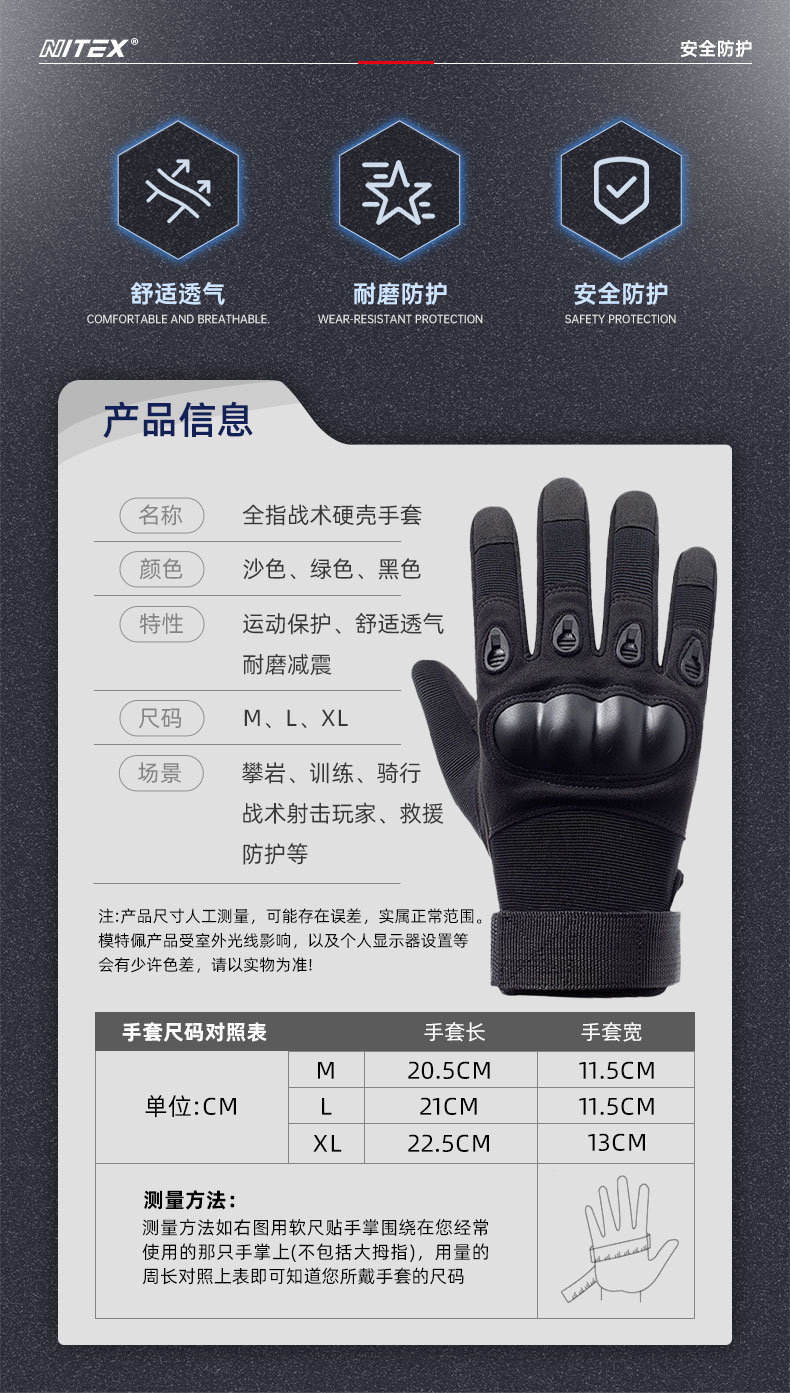 胜丽(SHENGLI)NT532H 硬壳全指战术手套减震防滑舒适安全 黑色