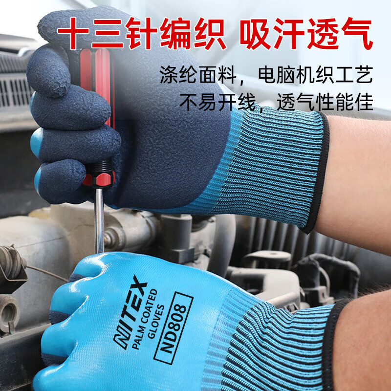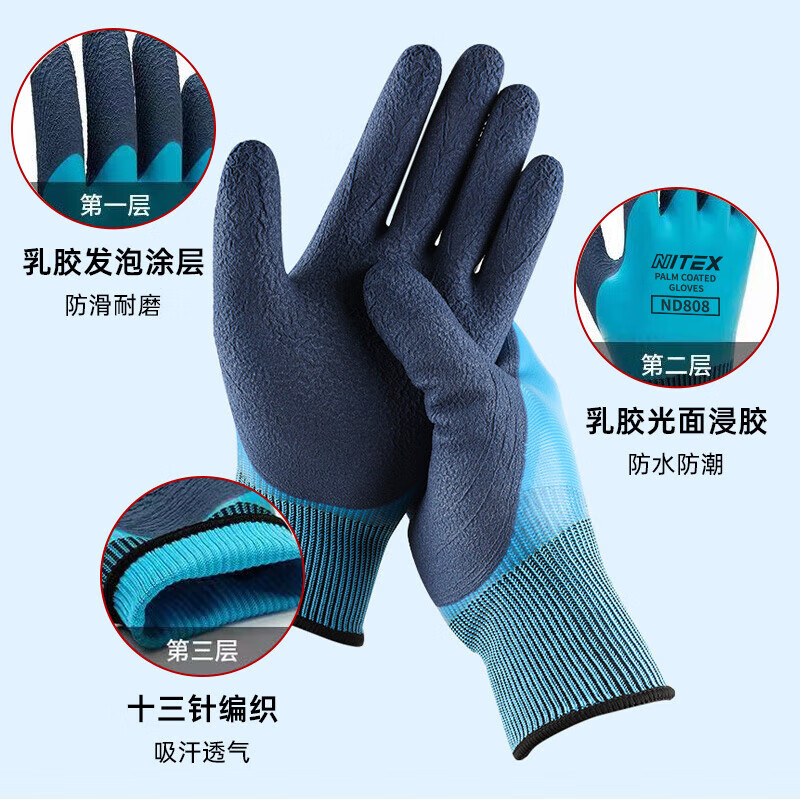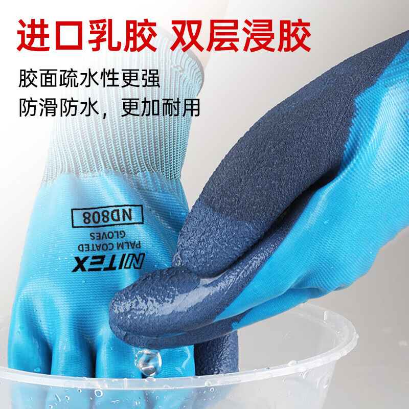 胜丽 ND808 双层挂胶手套 劳保手套防水耐磨 12副/包