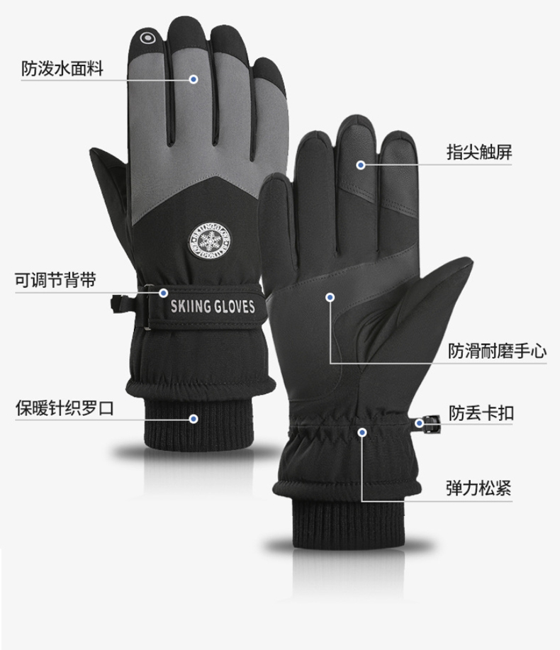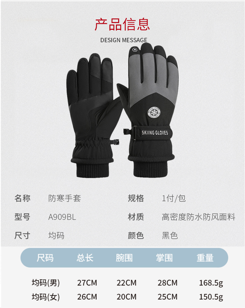 胜丽 A909BL 冬季运动保暖手套防泼水防滑触屏 圆标黑色1付装