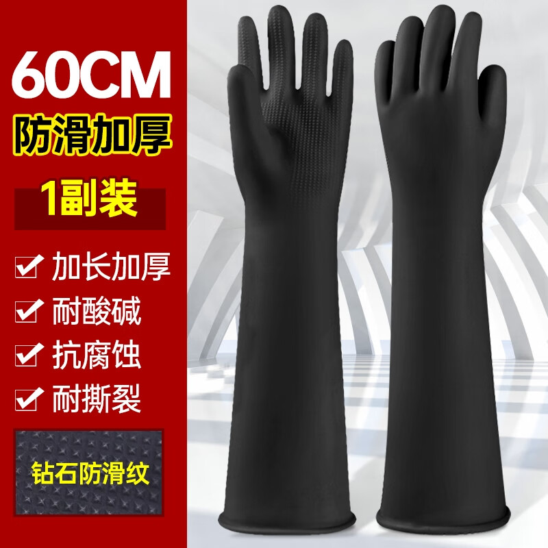 胜丽 GL60Z 乳胶劳保手套 耐酸碱耐油 防化 黑色 60CM 1副装