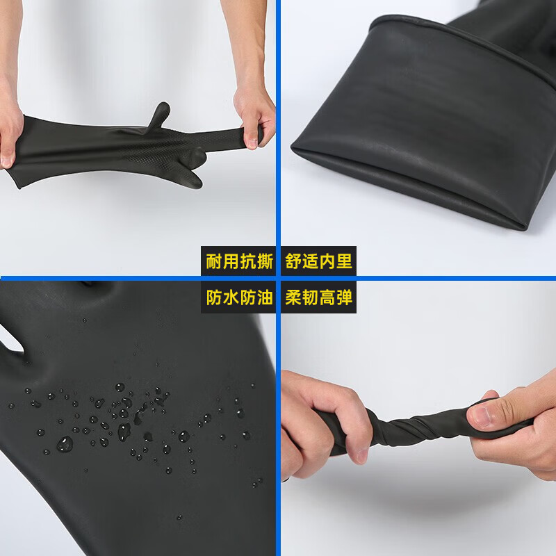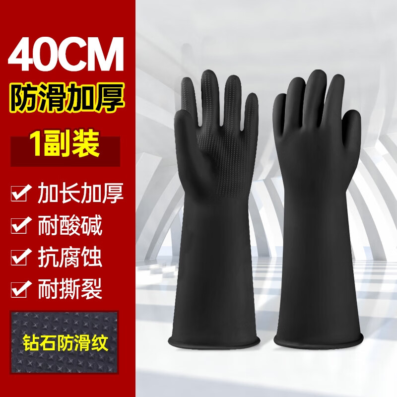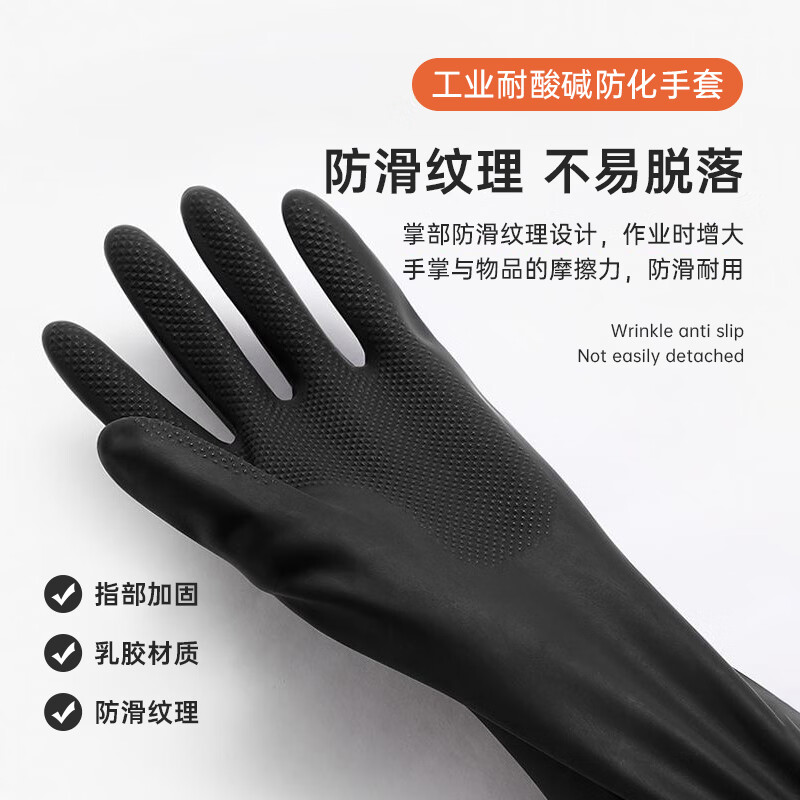 胜丽 GL40Z 乳胶劳保手套 耐酸碱耐油 防化 黑色 40CM 1副装