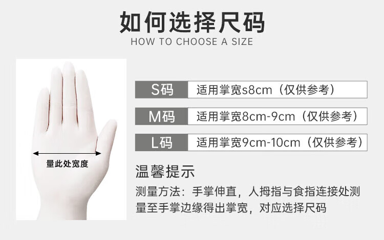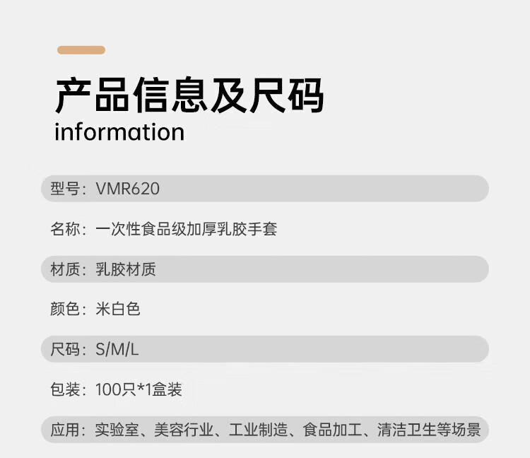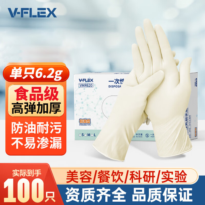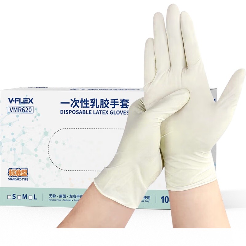 胜丽 VMR620 一次性乳胶手套加厚高弹 食品级 100只/盒