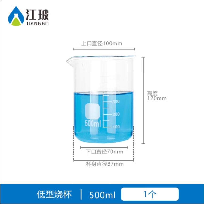 森淼办公 烧杯 实验器材 生物 化学 实验室 中性 耐高温 带刻度 高硼硅玻璃量杯 水杯 大烧杯 低型烧杯 500ML
