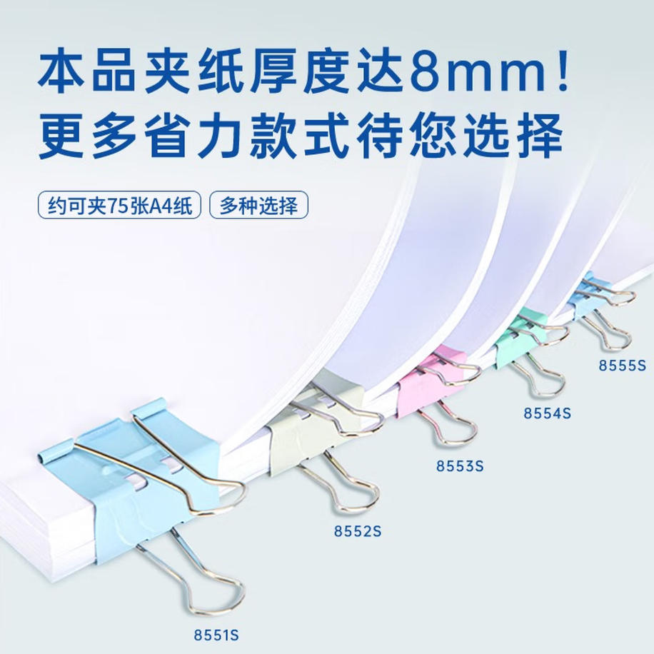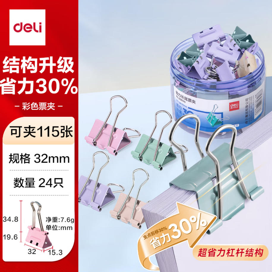 森淼办公 得力(deli)24只32mm省力彩色长尾夹票夹 3#中号金属燕尾夹票据文件夹子 办公用品 24只/筒 8553S