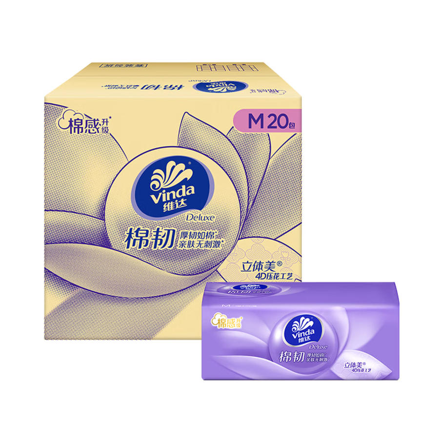云栖漫心 维达(Vinda)抽纸 棉韧3层100抽*20包M码 卫生纸纸抽 纸巾 整箱