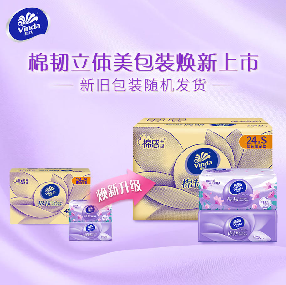 云栖漫心 维达(Vinda)抽纸 棉韧3层100抽*24包S码 亲肤无刺激纸巾