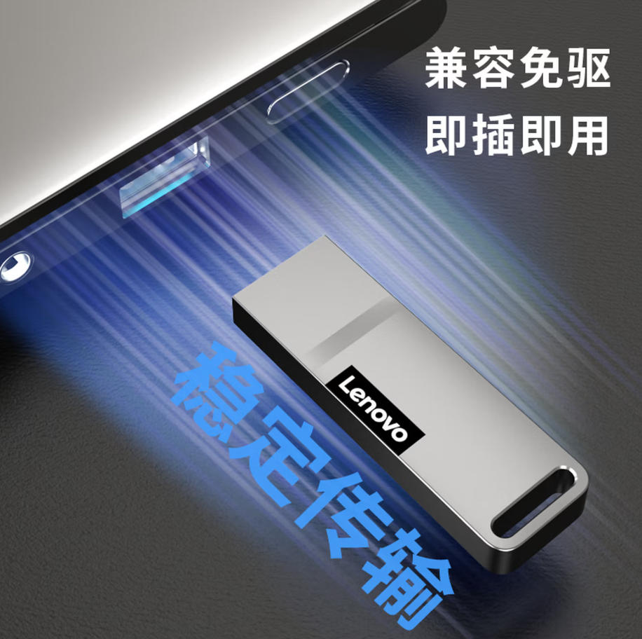 云栖漫心 联想(Lenovo)16GB USB2.0 U盘 K110 小巧便携 抗震防摔 金属 招标 实验资料 会议文件