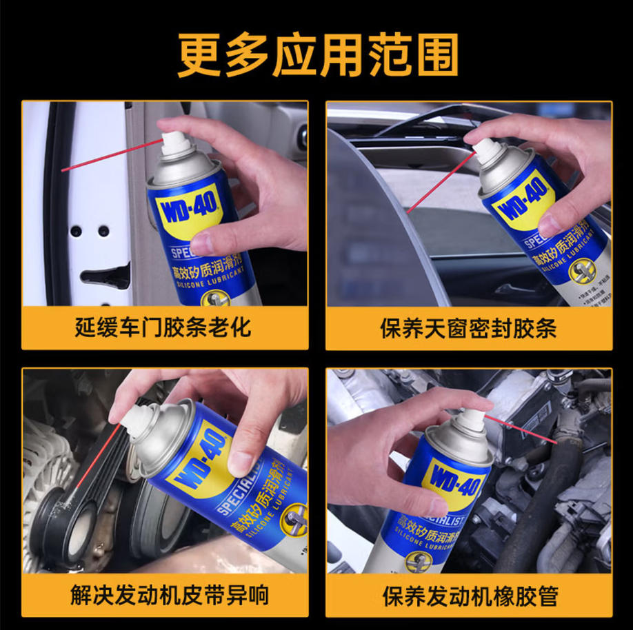 云栖漫心 WD-40 矽质润滑剂 wd40汽车窗 安全带 橡胶套 胶条 保养发动机异响 皮带 消音剂