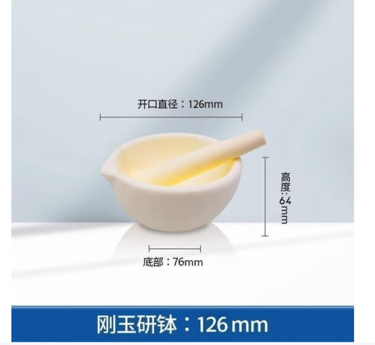 君航科技 99%氧化铝刚玉研钵/捣药罐/刚玉乳钵80/93/126/152mm实验室氧化铝刚玉乳钵含研钵棒 126mm含棒