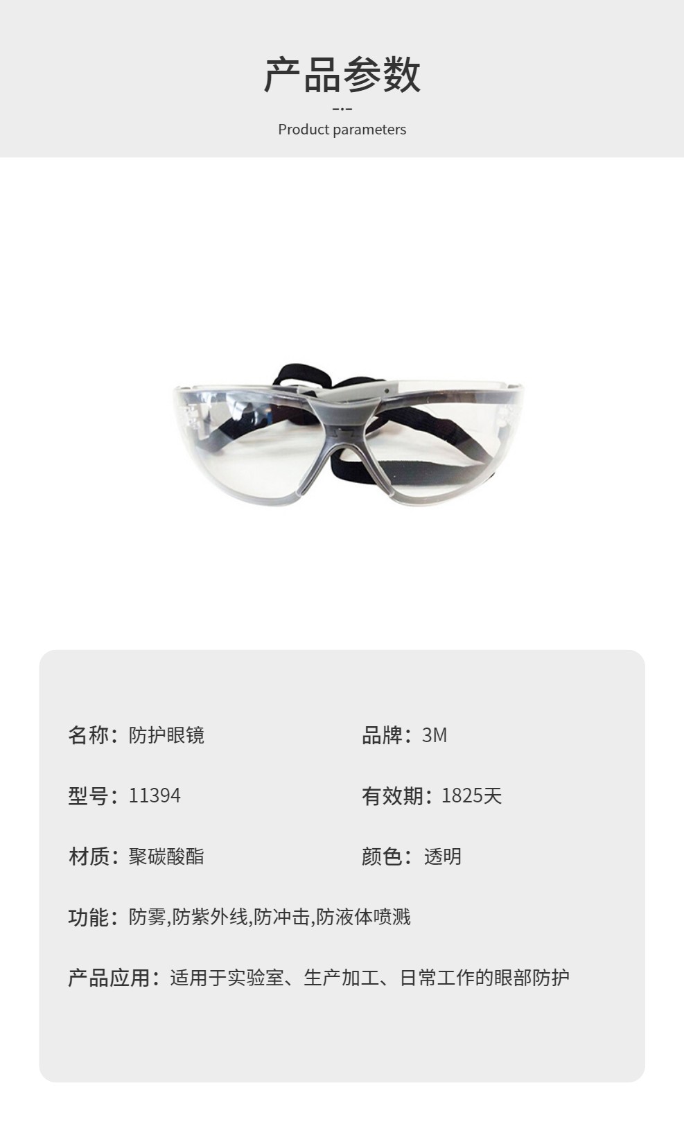 3M 11394 护目镜骑行防风防尘防护眼镜劳保工业切割防打磨飞溅冲击 1副装