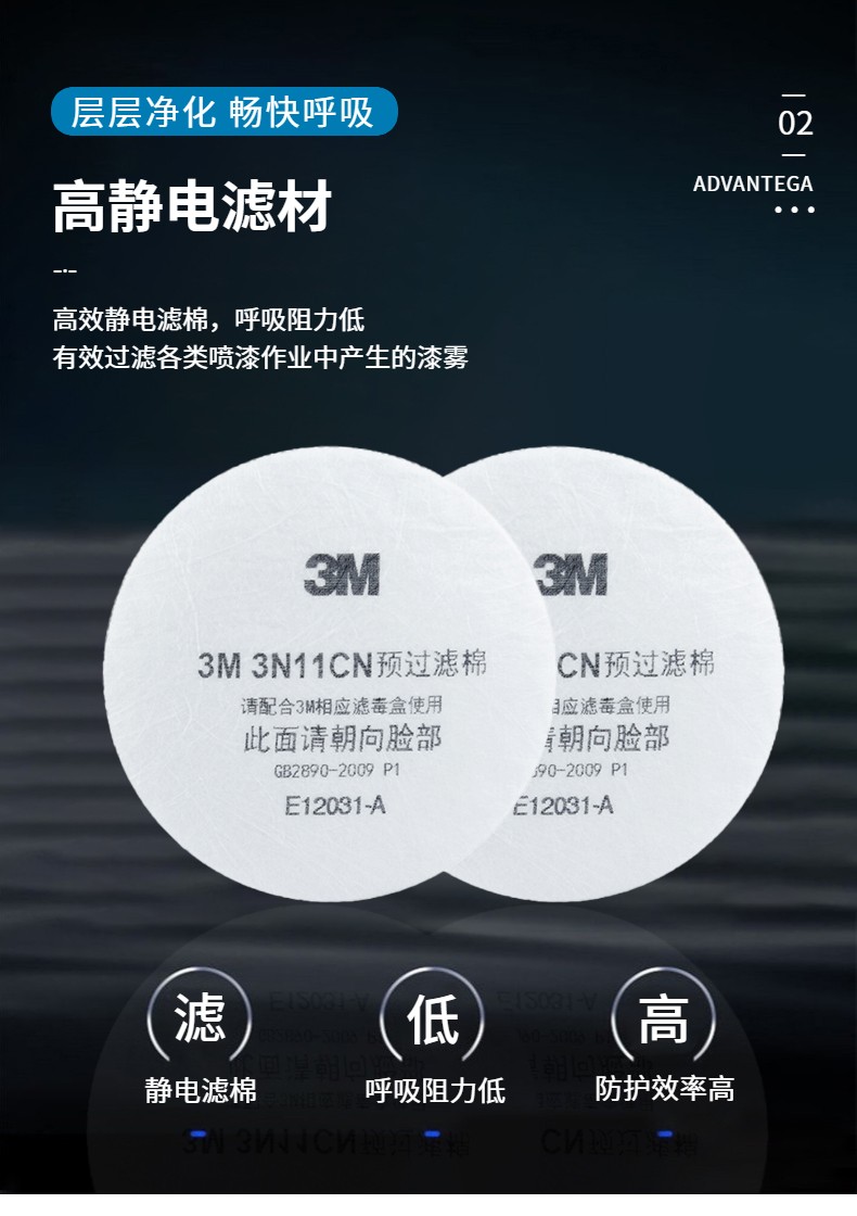 3M 防毒面具配件 3N11 滤棉 防飞沫颗粒物化学喷漆等 需配3200面罩使用