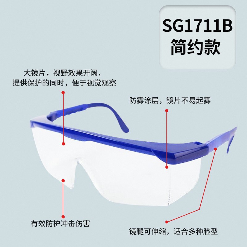 胜丽 SG1711B 护目镜防粉尘防风防飞溅工业切割防护眼镜风镜可伸缩腿 蓝色1副