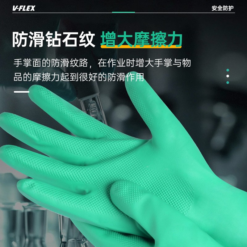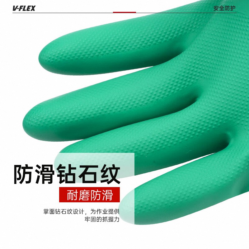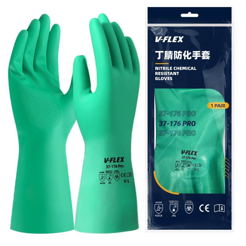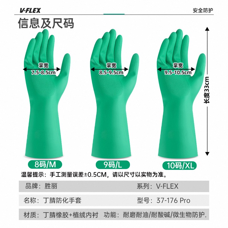 胜丽 37-176pro丁腈橡胶防化手套劳保耐酸碱防油防腐蚀实验室手套工业绿色 L码 1副