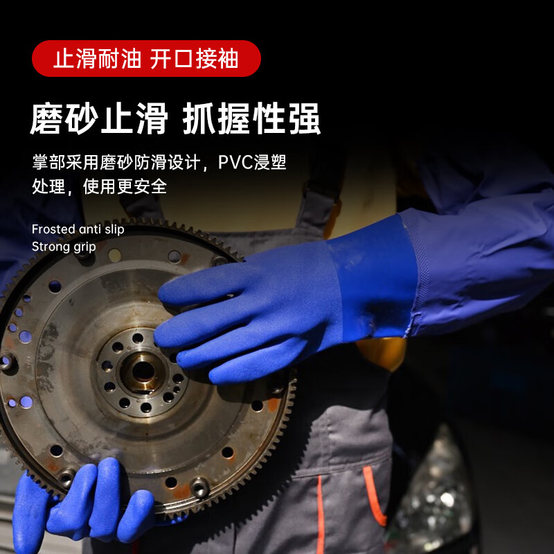 胜丽 GFH997-65KB PVC开口接袖手套 65cm蓝色 1副装