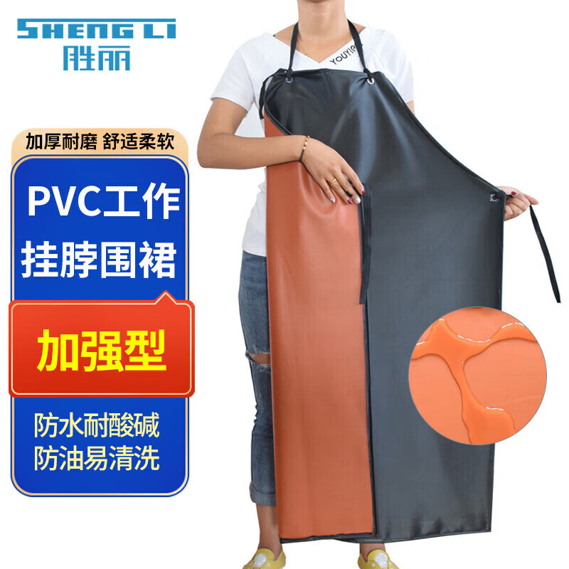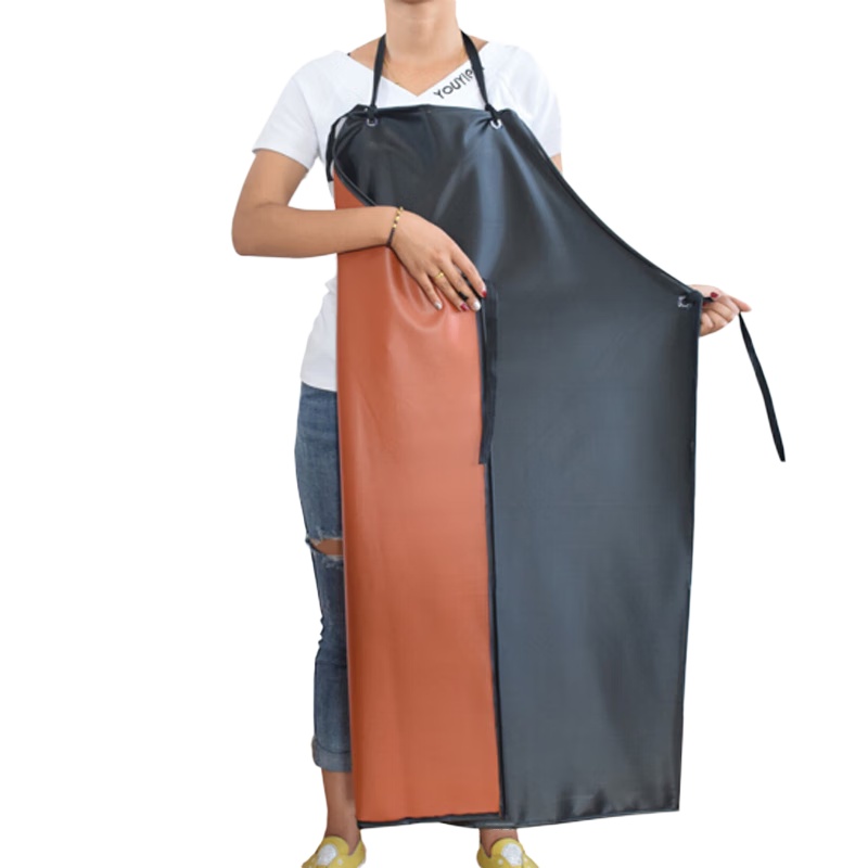 胜丽 BR801 防水防油围裙工作服皮围裙耐酸碱围裙男士用劳保厨师餐饮保洁双层加厚黑红 5件装