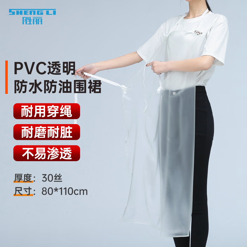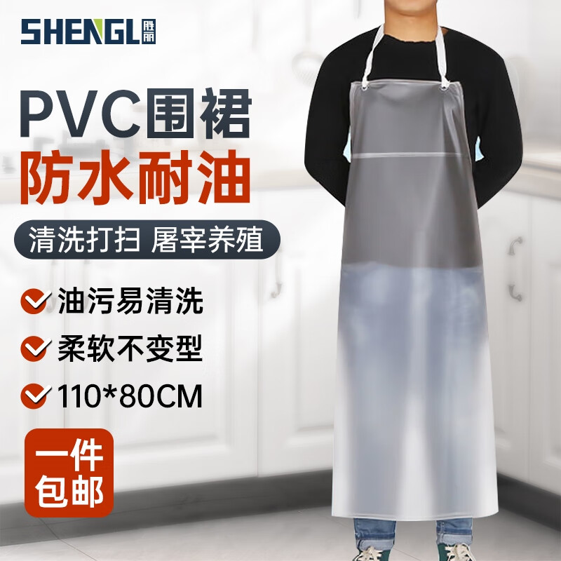 胜丽 BPC802 防水围裙厨房防油工作服耐磨PVC挂脖围裙劳保厨房男女耐酸碱透明色 5件