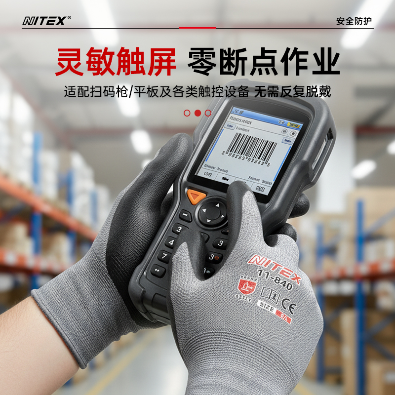 胜丽 劳保手套可触屏15针发泡丁腈浸胶指尖加厚 灰色 1副 11-840