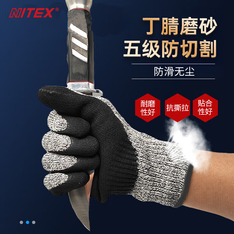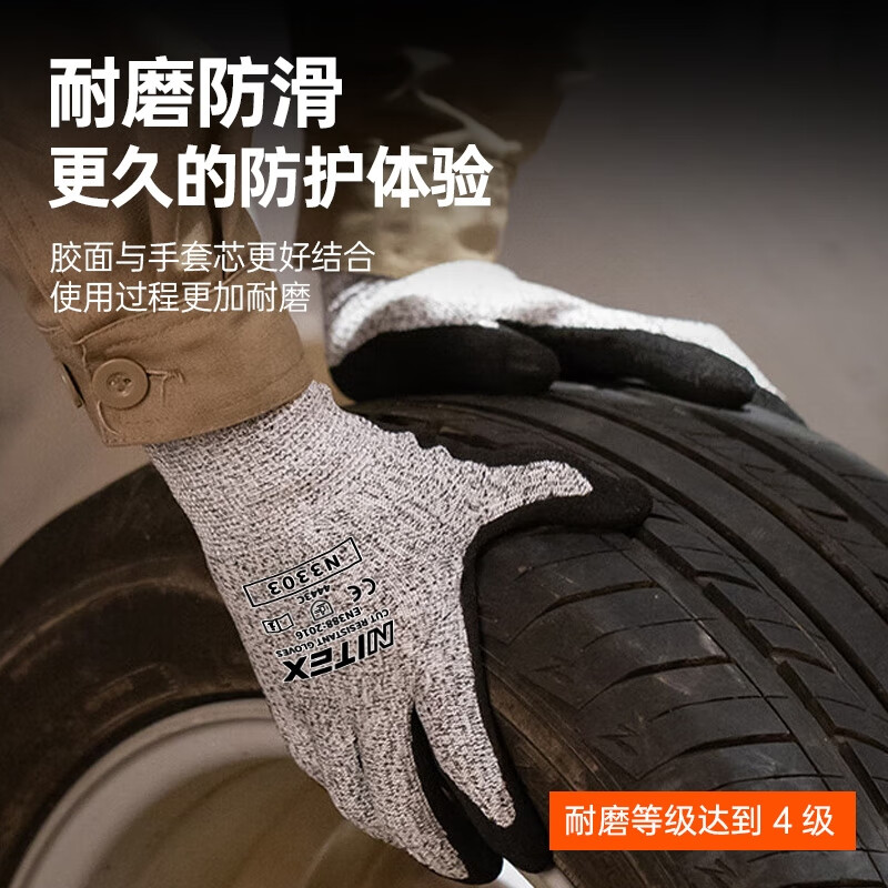 胜丽 NITEX® N3303 C级防割手套劳保防切割双层丁腈浸胶涂掌 木工防割伤灰色