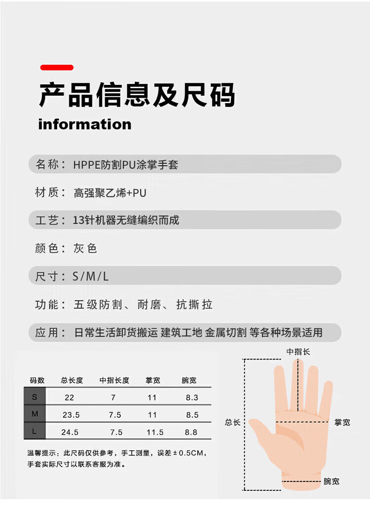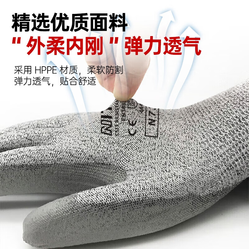 胜丽 NITEX® N7308 C级防割手套劳保防切割防滑防刀割伤pu浸胶涂掌灰色