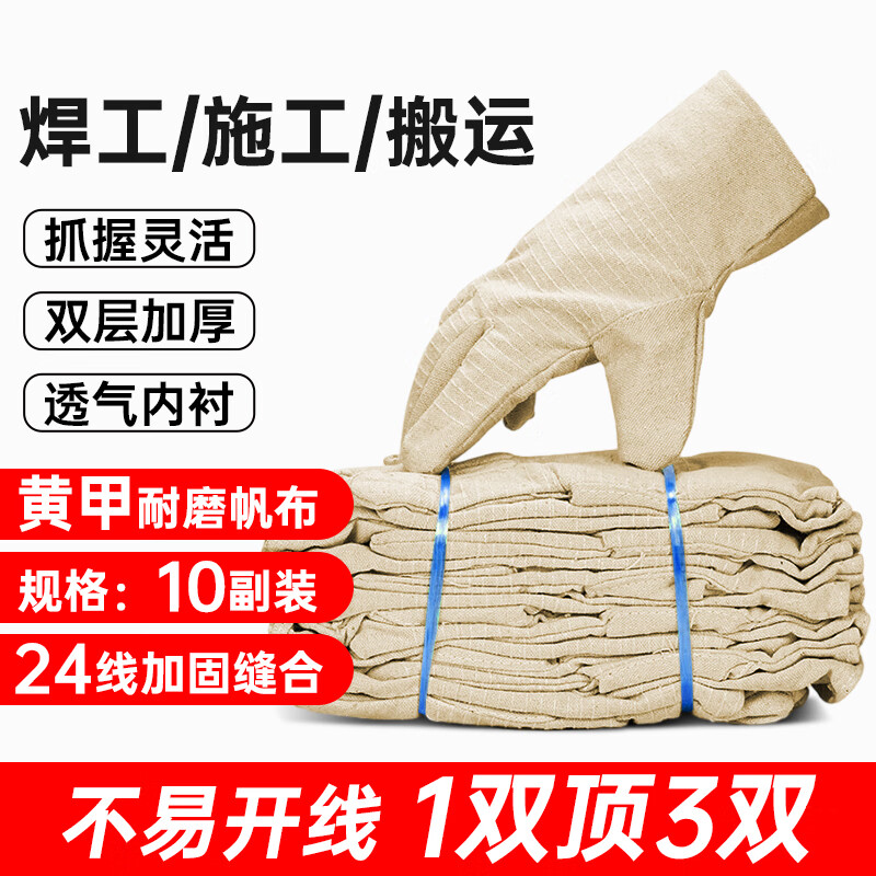 胜丽 GCF241 帆布手套劳保加厚耐磨抗撕裂电焊搬运防护24道线双层棉质工作手套 10副装
