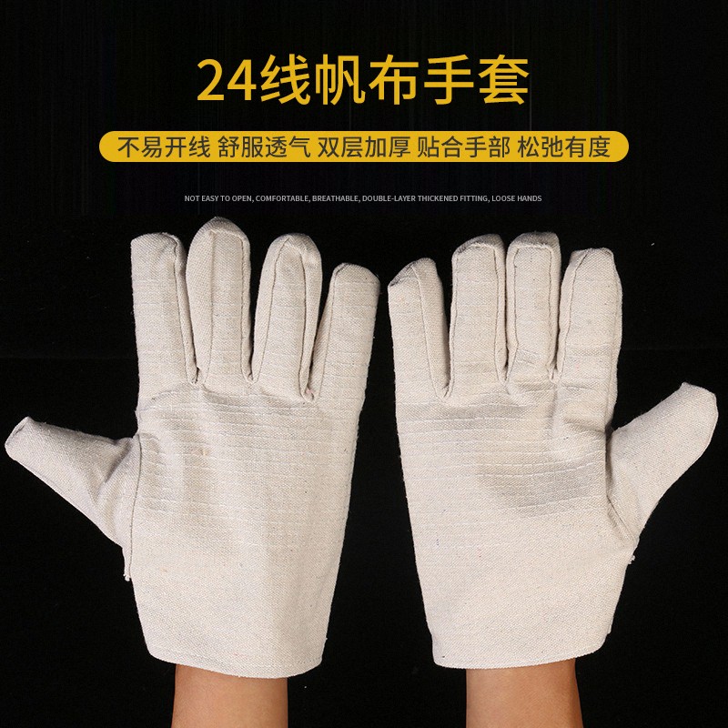 胜丽 GCF240 帆布手套劳保加厚耐磨抗撕裂电焊搬运防护24道线双层棉质工作手套 钢筋工建筑行业批发 100副装