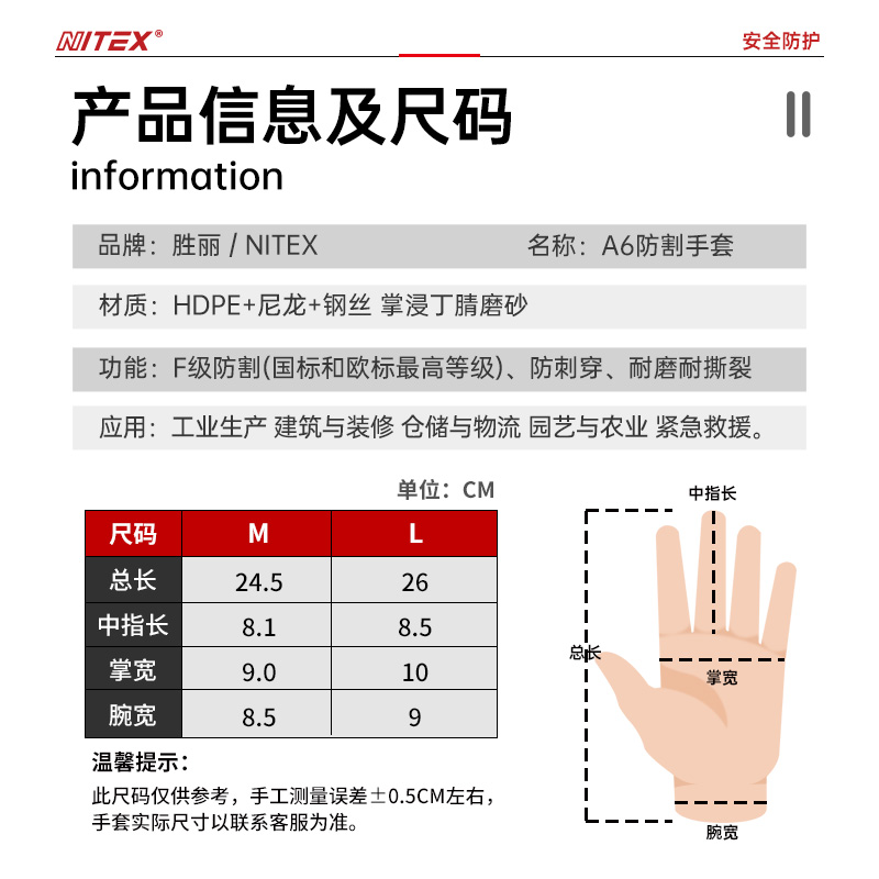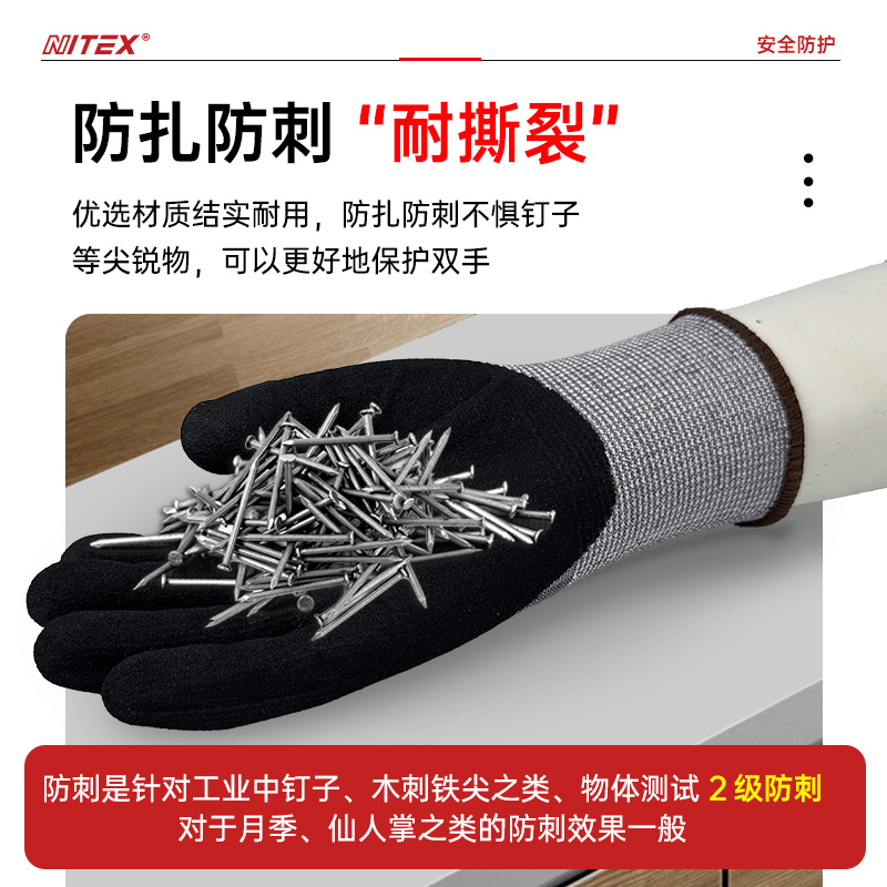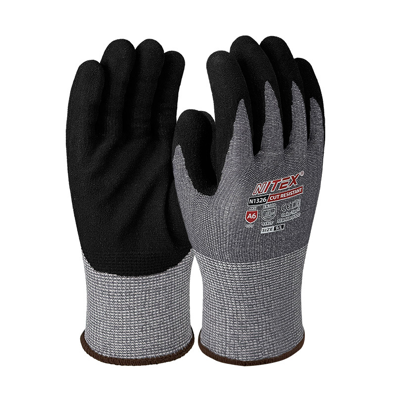 胜丽 NITEX® N1326 F级防割手套磨砂丁腈钢丝耐磨手套 A6防切割木工防割伤灰色
