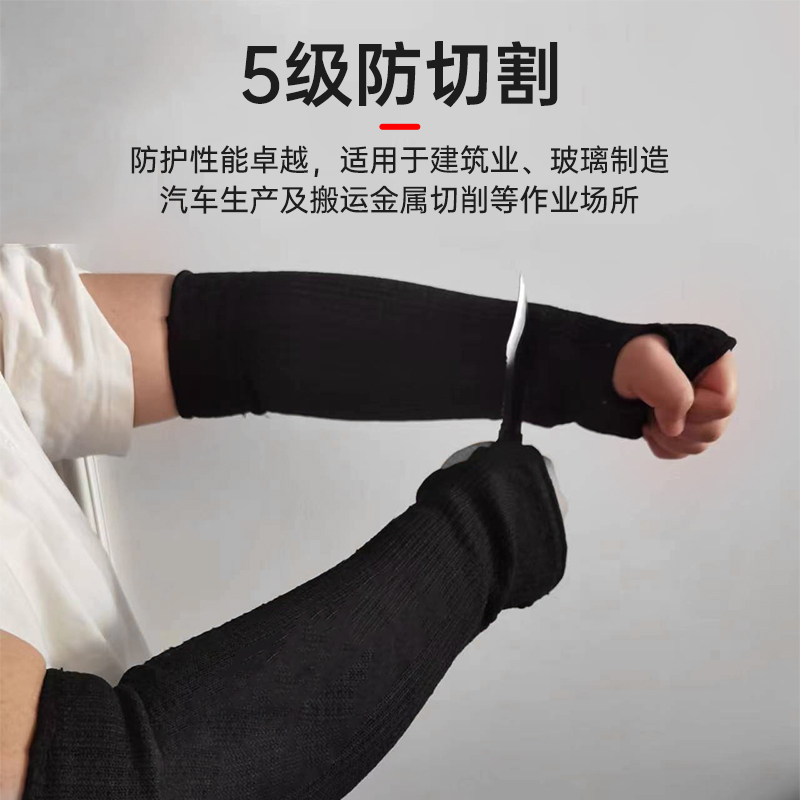 胜丽5级防割护臂袖套防划伤防切割护肘护腕魔术贴款一对45cm 黑色 FGTX04