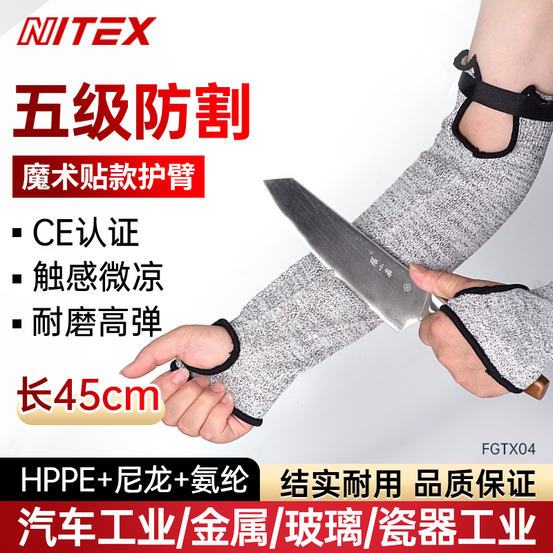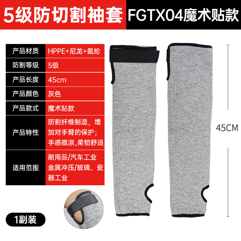 胜丽 FGTX04 5级防割护臂袖套防划伤防切割护肘护腕魔术贴款一对 45cm 灰色