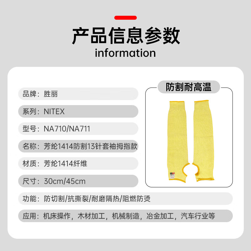 胜丽 NITEX® NA711 5级防割护臂袖套玻璃厂护腕肘部防划伤 45cm