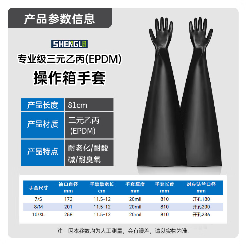 胜丽 GCB510 三元乙丙EPDM橡胶手套箱手套耐臭氧老化科研实验室手套 袖口258mm