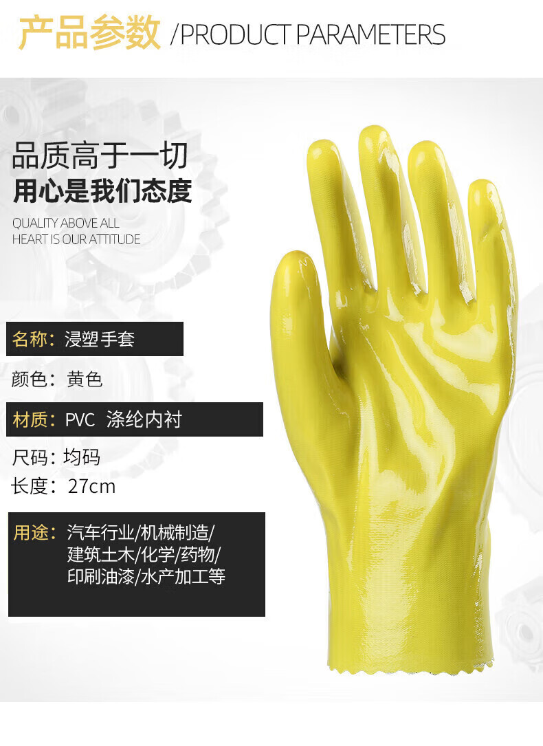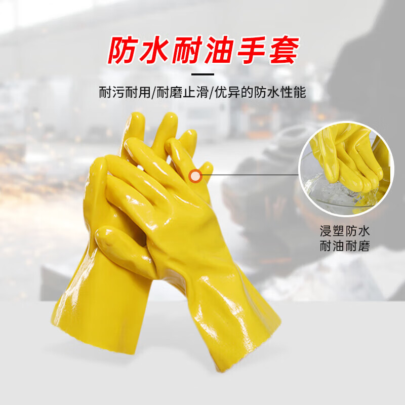 胜丽 208 浸塑手套 黄色 耐磨耐弱酸碱工业防护 5副装