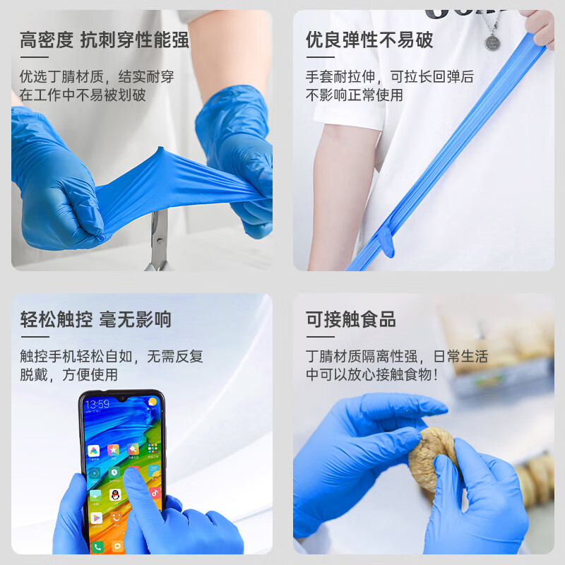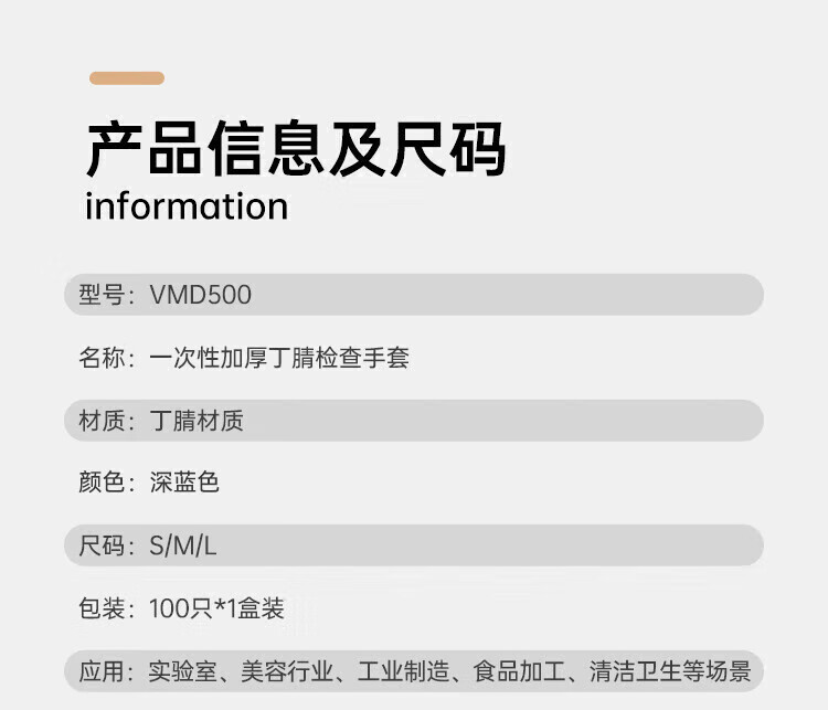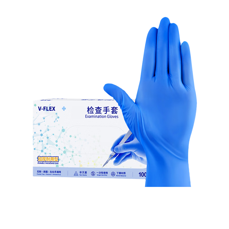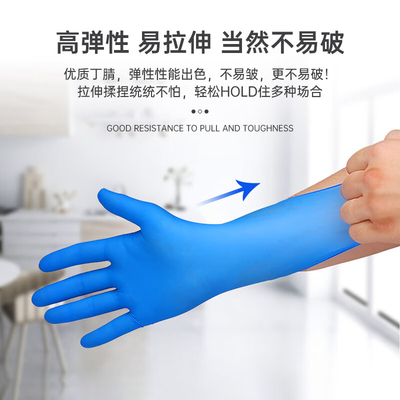 胜丽一次性丁腈手套加厚 高弹防油防滑 厨房实验室检查100只/盒 深蓝色VMD500