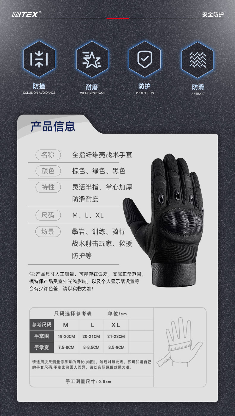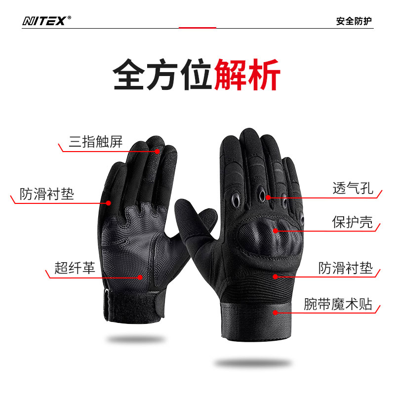 胜丽(SHENGLI) 纤维壳全指战术手套 减震防滑透气防汗 黑色 NT531H