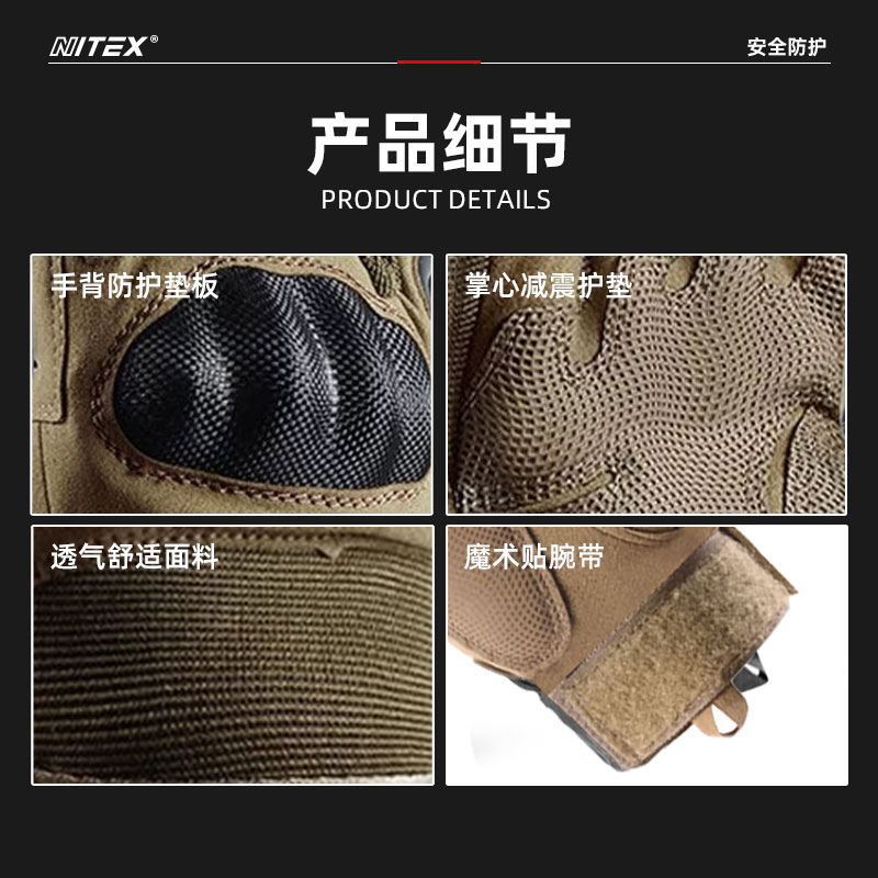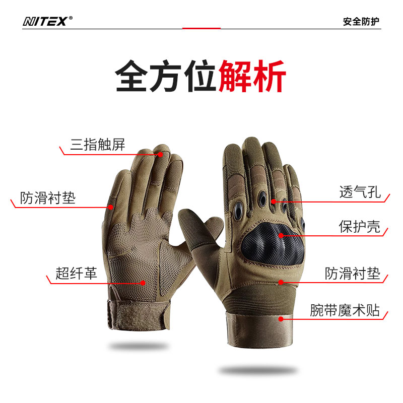 胜丽(SHENGLI) 纤维壳全指战术手套 减震防滑透气防汗 沙色 NT531S