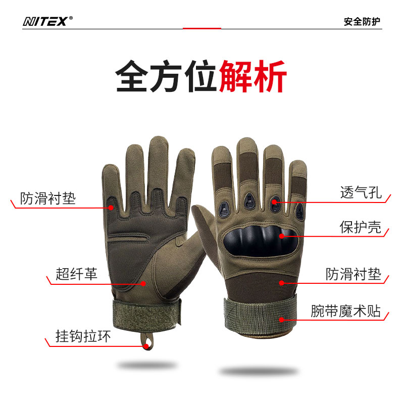 胜丽(SHENGLI) 硬壳全指战术手套 减震防滑舒适安全 绿色 NT532L