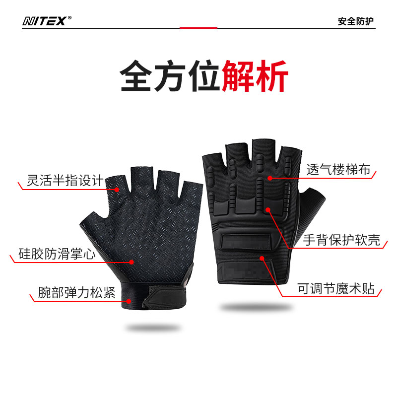 胜丽(SHENGLI) 半指战术手套 透气防滑减震舒适 黑色 NT542H