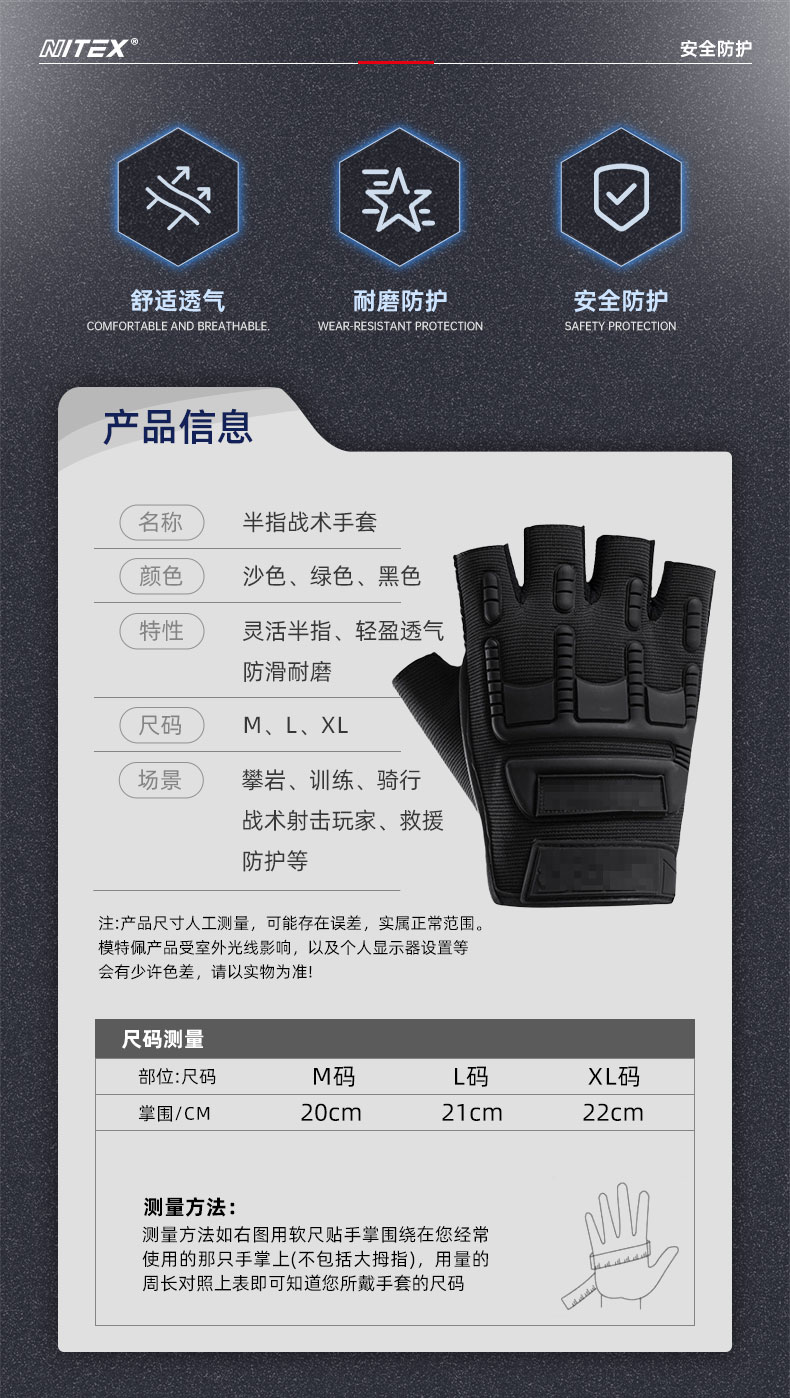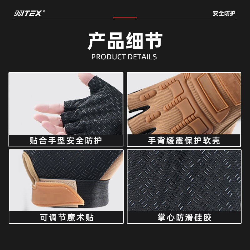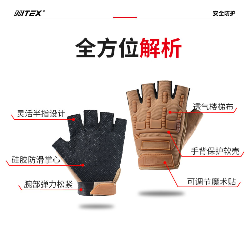 胜丽(SHENGLI) 半指战术手套 透气防滑减震舒适 沙色 NT542S