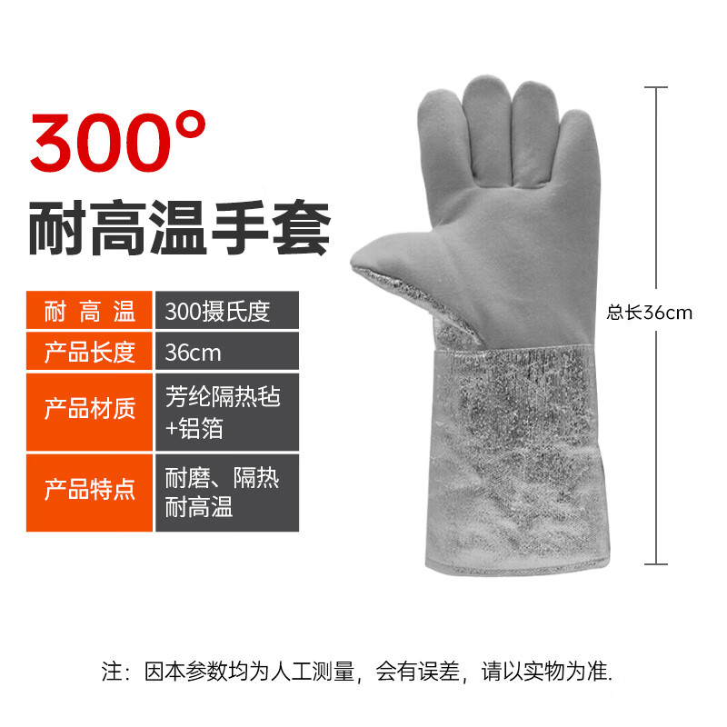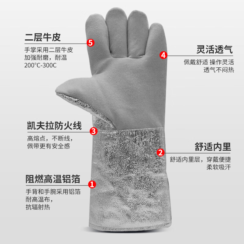 胜胜丽 隔热手套防烫耐高温300度阻燃加厚铝箔芳纶工业锻造36cm 1副S58