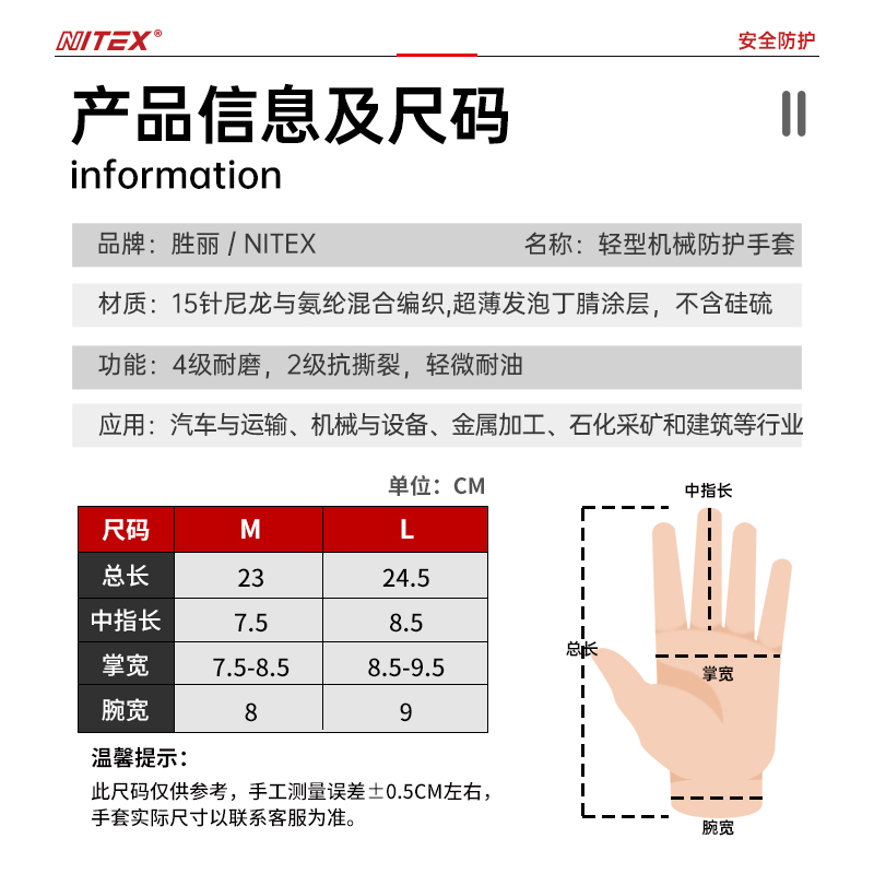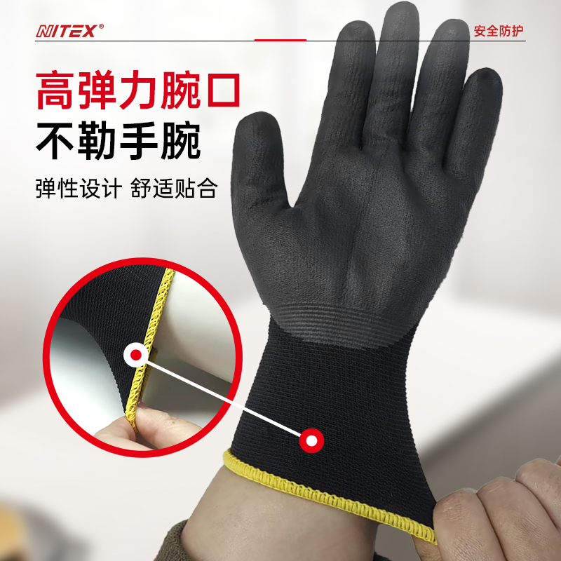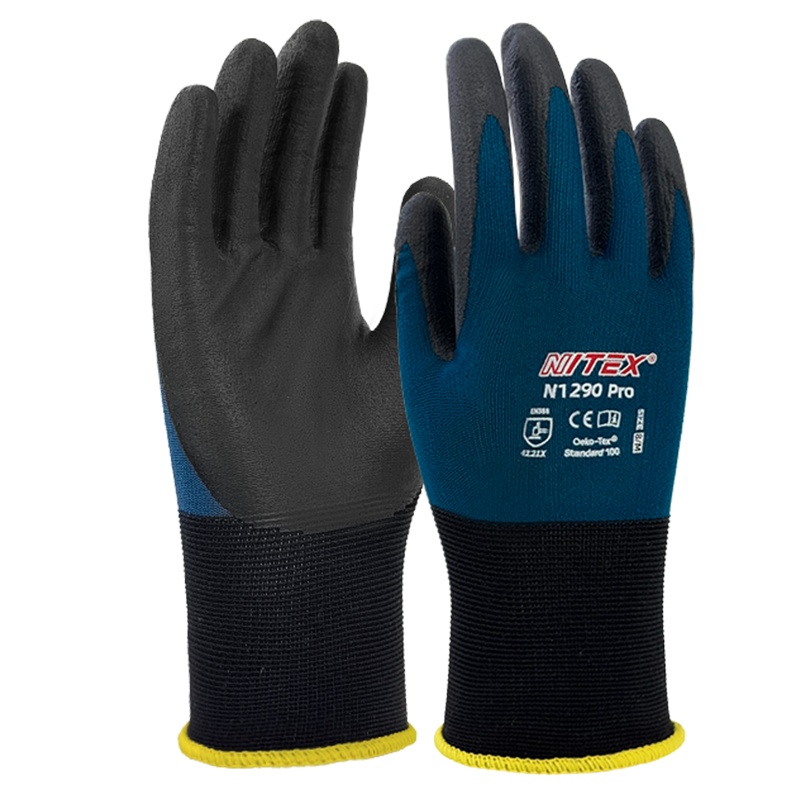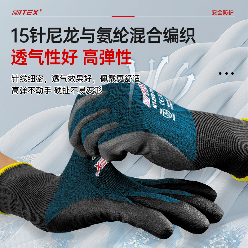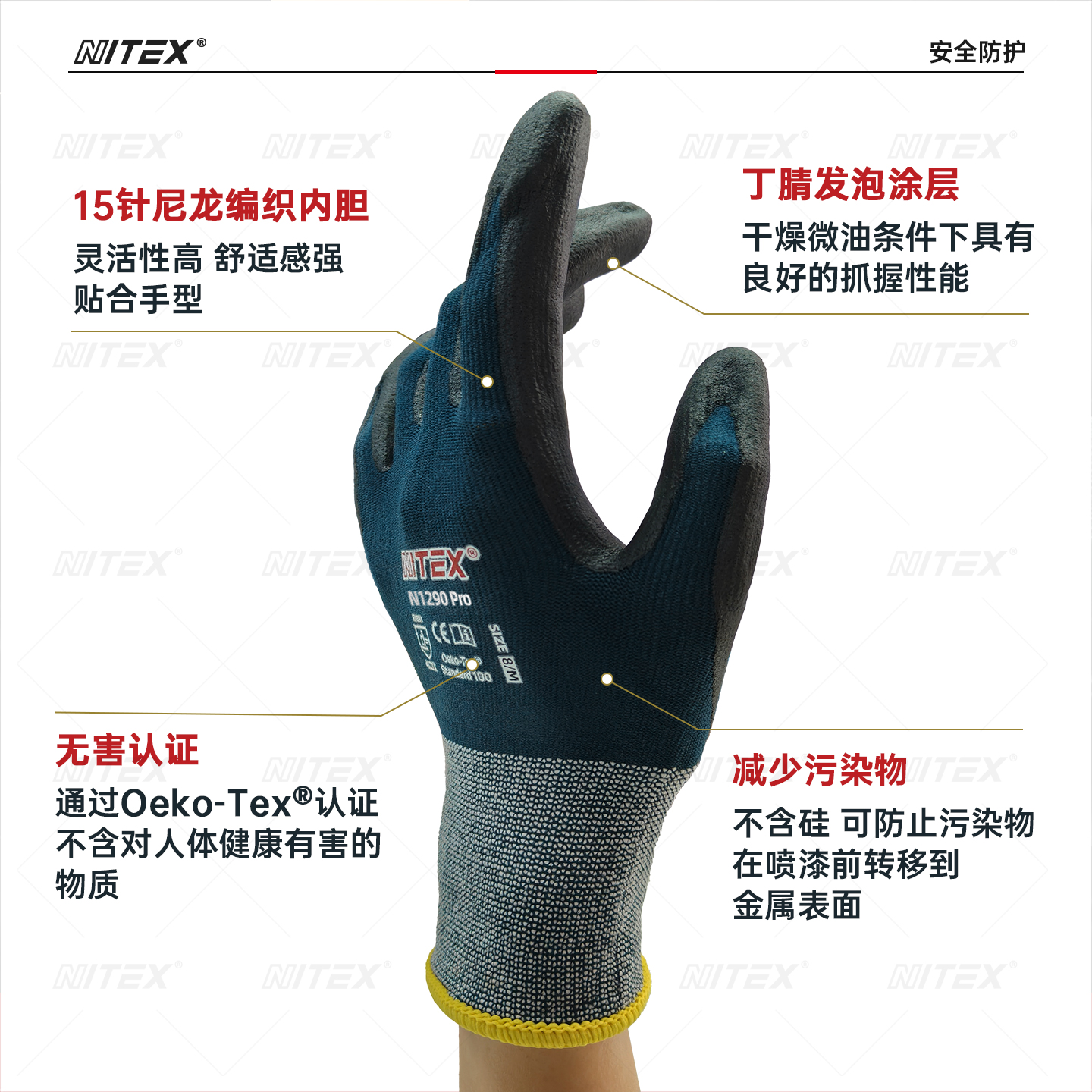 胜丽 NITEX® 丁腈发泡涂层手套 劳保手套高弹透气防滑耐微油 汽车线束精细作业高精度轻型装配手套 N1290 Pro