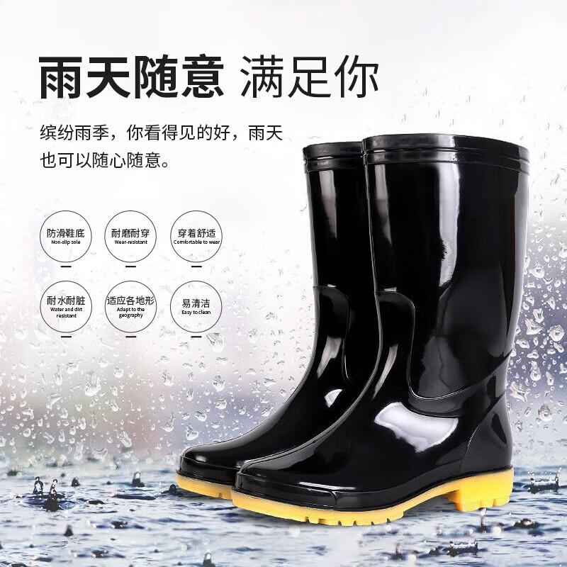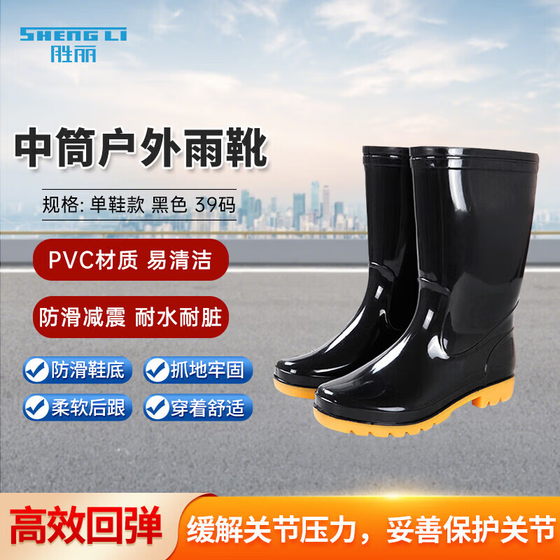 胜丽 FPB030N 雨鞋男中筒防滑雨靴女士防水鞋户外黑色 1双
