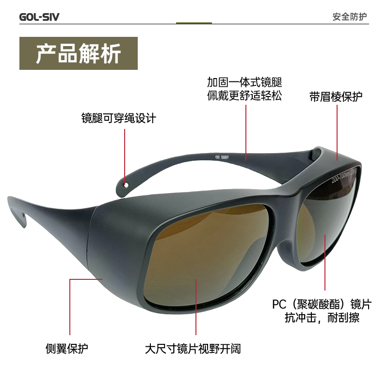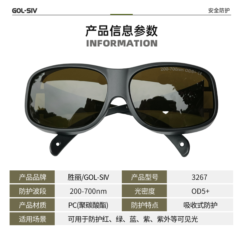 胜丽 3267 激光防护眼镜防护波段200-700nm黑框 防红光 绿光 蓝光 紫光 紫外等可见光