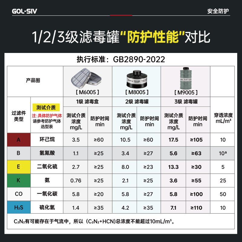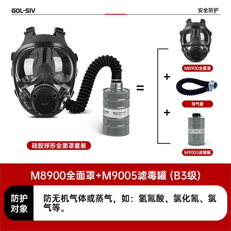 胜丽防毒面具全面罩搭配H2S类3级滤毒罐套装防硫化氢 化工军事M8900+M9005 1套装