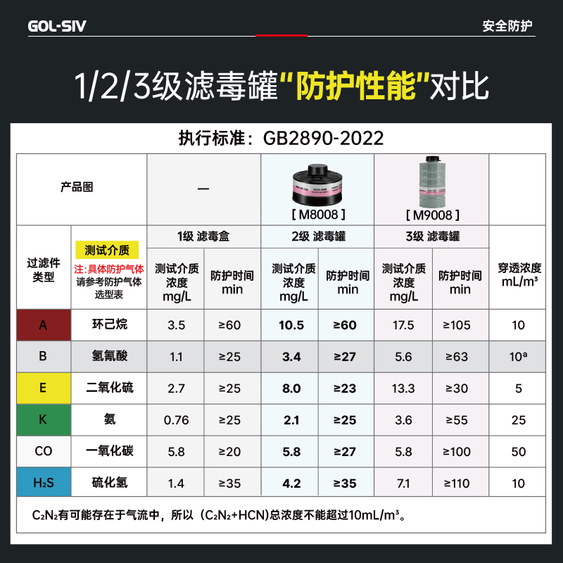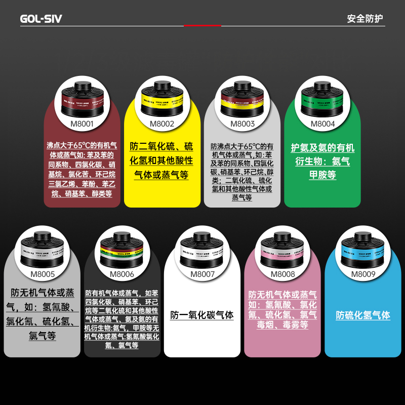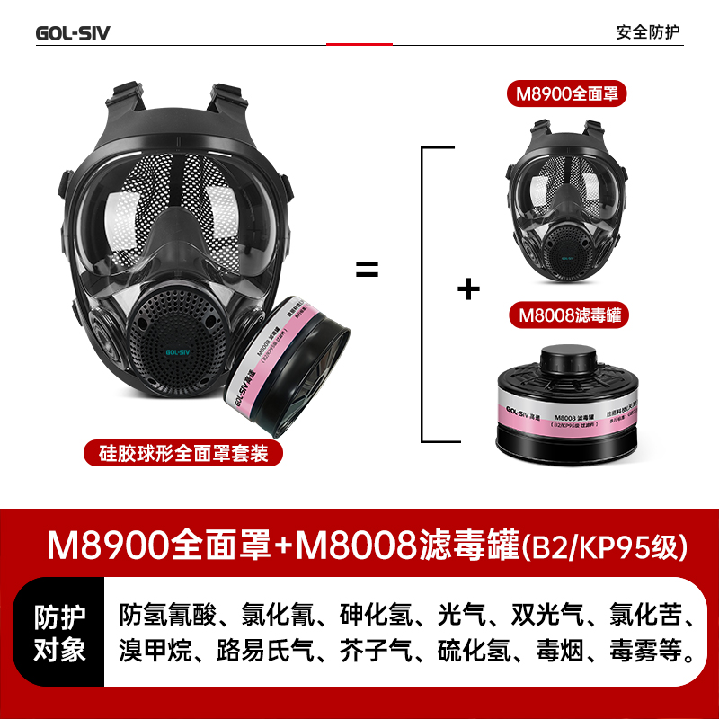 胜丽 GOL-SIV® 二级滤毒罐防毒面具全面罩套装BL类加滤烟层防催泪瓦斯/毒烟/毒雾军事化工M8900+M8008 1套装