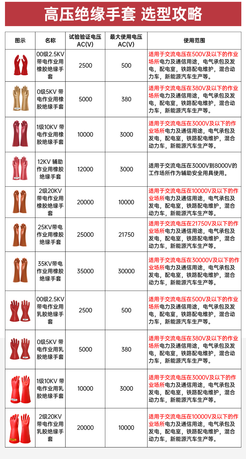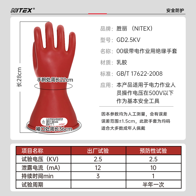 胜丽 GD2.5KV 00级带电作业用高压绝缘手套乳胶手套2.5KV 适用交流电压不大于500V的作业场所 每隔6个月必须进行预防性试验